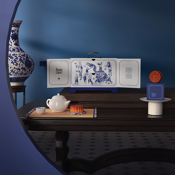 Inday Creative ra mắt bộ hộp quà Lam Sắc – thiết kế cánh gập 2 tầng cao cấp, nổi bật với phong cách dân gian Việt Nam và gam màu xanh dương làm chủ đạo. Sự kết hợp tinh tế giữa sắc xanh mực bút bi và họa tiết truyền thống tạo điểm nhấn phá cách, khác biệt hoàn toàn với những mẫu hộp trung thu thông thường vốn sử dụng tông đỏ, vàng, cam.