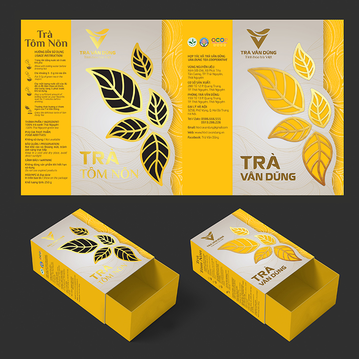 Inday Creative đồng hành cùng Trà Vân Dũng – đặc sản Tân Cương, Thái Nguyên – trong hàng loạt dự án thiết kế & sản xuất trọn gói bao bì cho đa dạng dòng trà cao cấp. Sản phẩm nổi bật với hệ thống bao bì hộp bao diêm, hộp nắp gập nam châm sang trọng, kết hợp cùng túi giấy đồng bộ và nhiều định dạng phù hợp từ bán lẻ đến set quà tặng.